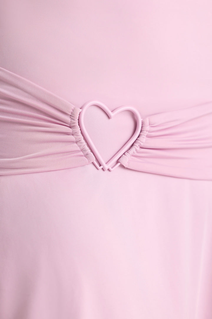 Soft Pembe Kalp Detaylı Dekolte Yaka Mini Elbise
