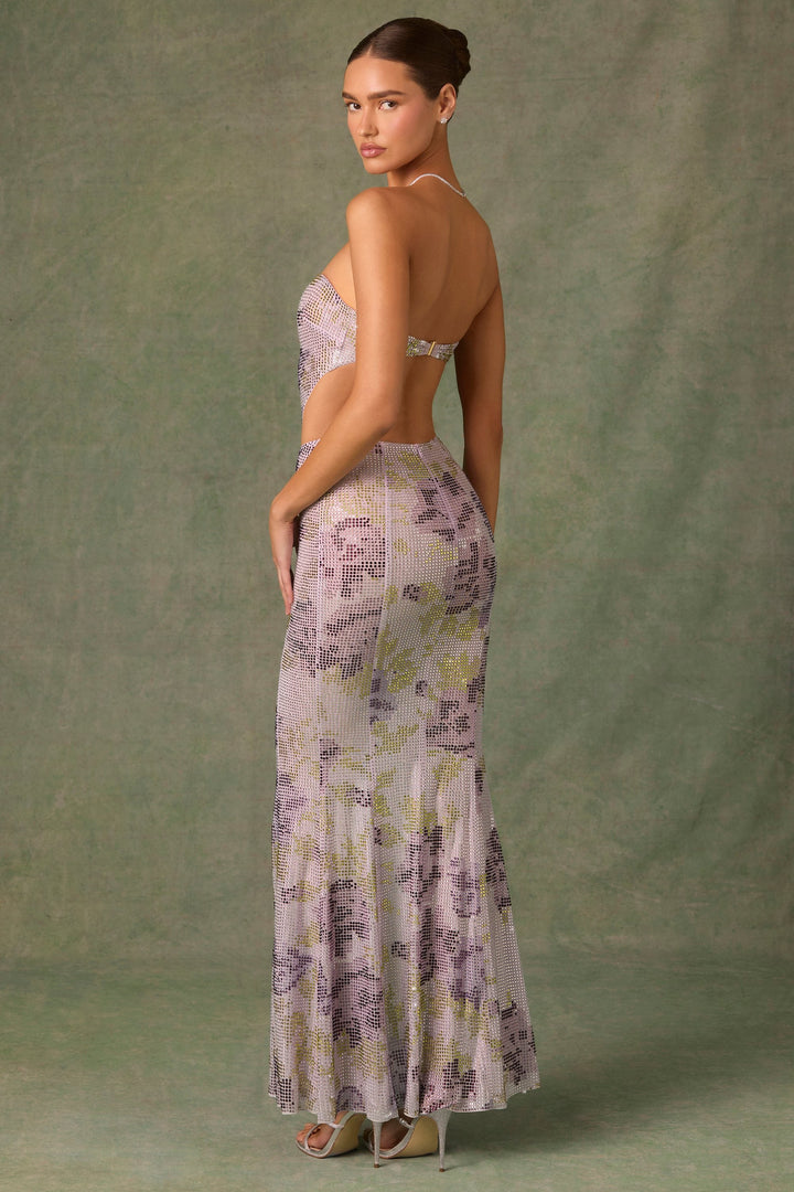 Lila Düzeltmeli, Kesikli, Balık Kuyruğu Maxi Elbise