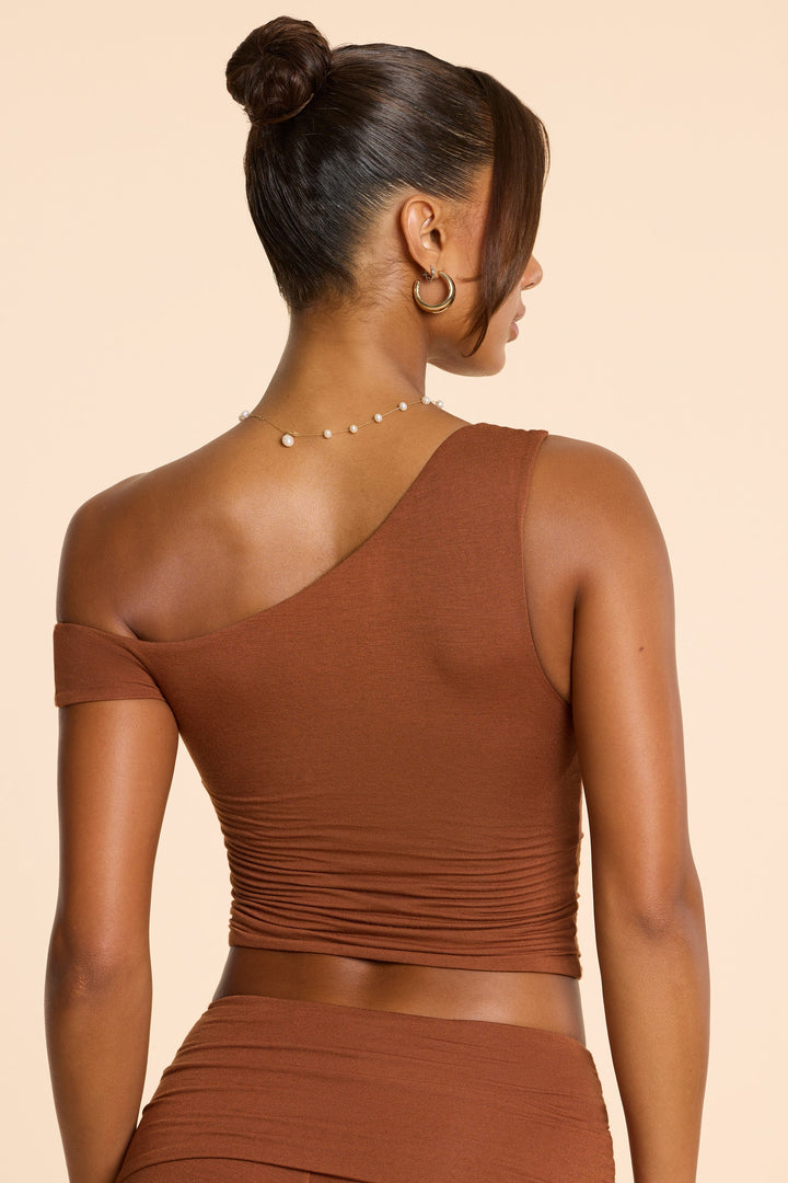 Kestane Kahvesi Asimetrik Yaka Dantelli Modal Kaşmir Karışımlı Üst
