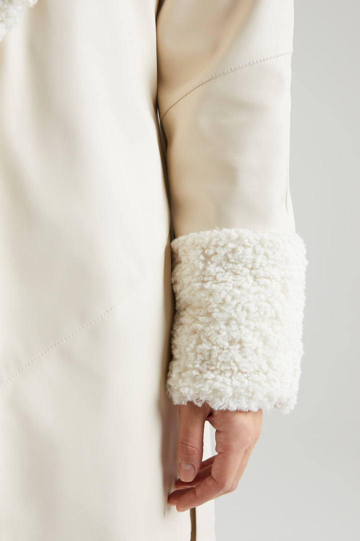 Krem Yakalı Ve Manşetli Bağlamalı Kaban