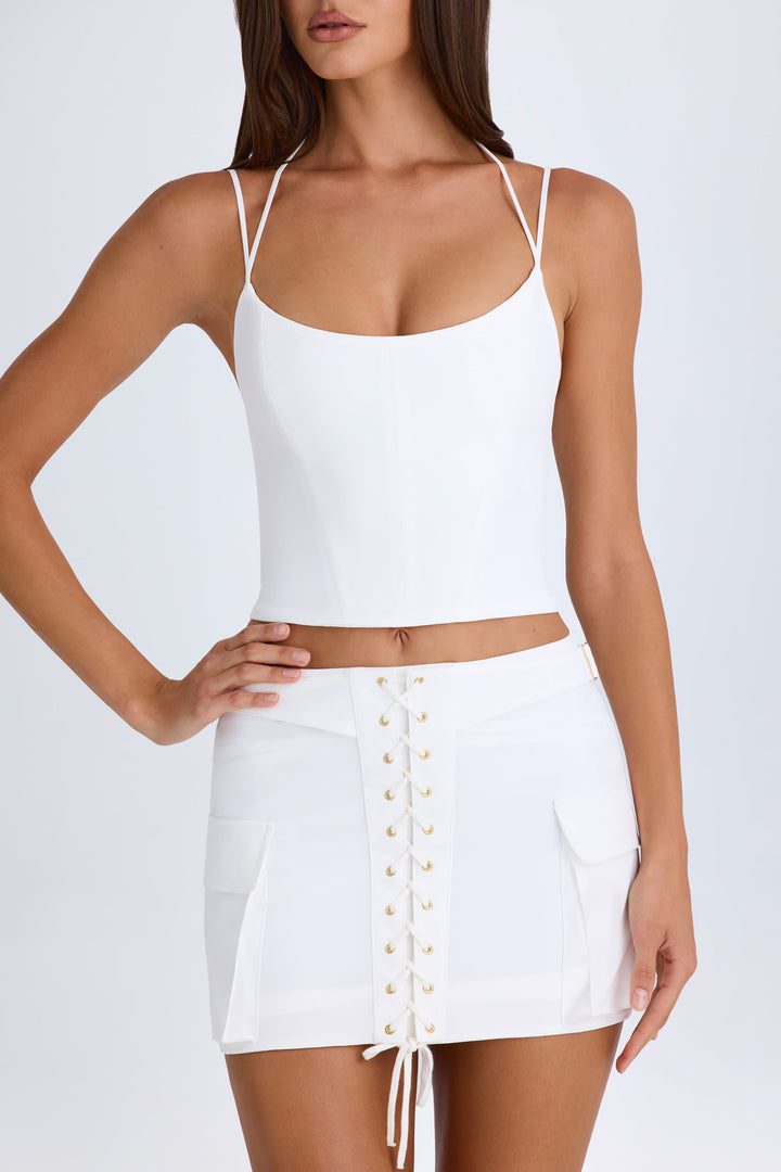 Beyaz Bağcıklı Mikro Mini Etek