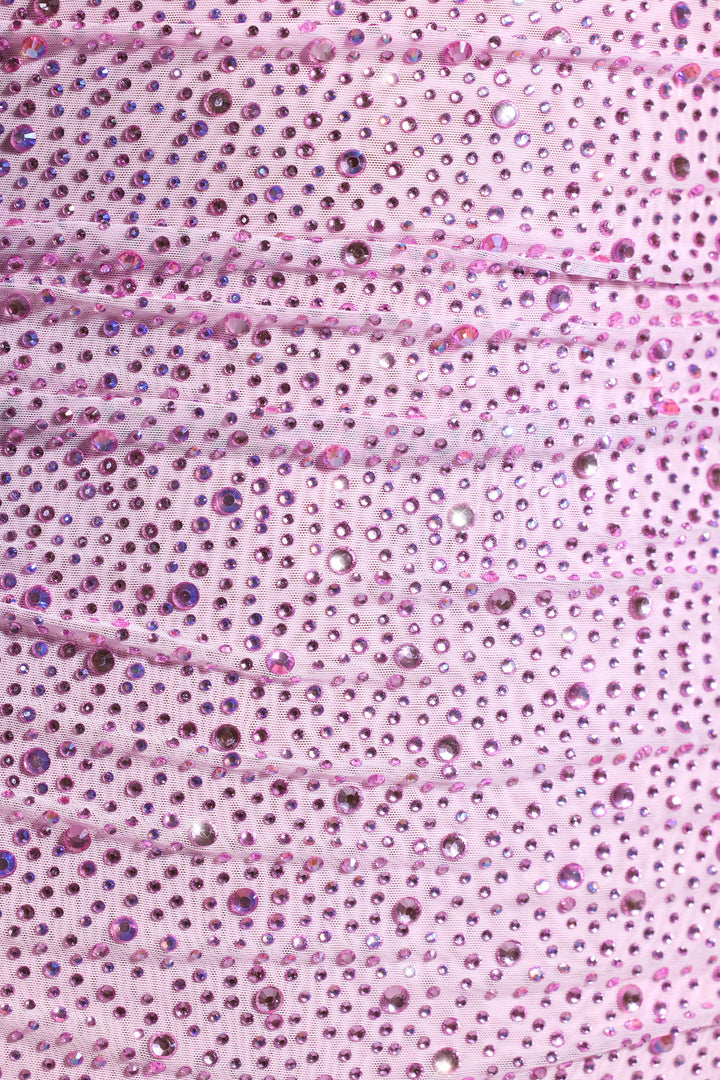 Şakayık Pembesi Taşlı Drapeli Dekolteli Mini Elbise