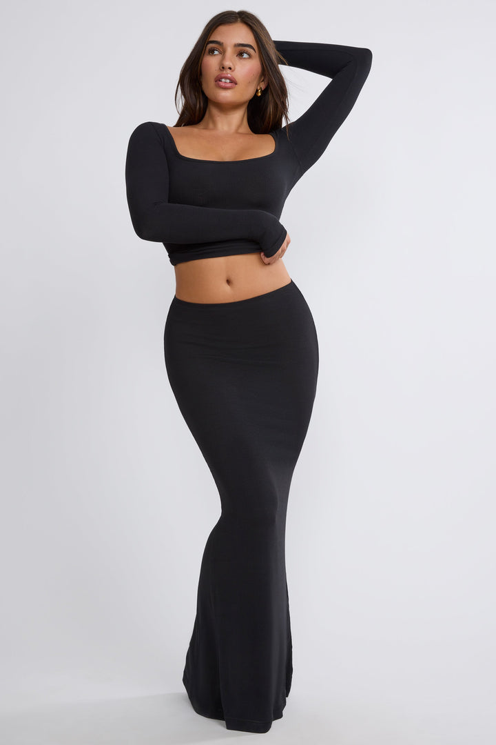 Siyah Fitilli Modal Mid Bel Maxi Etek
