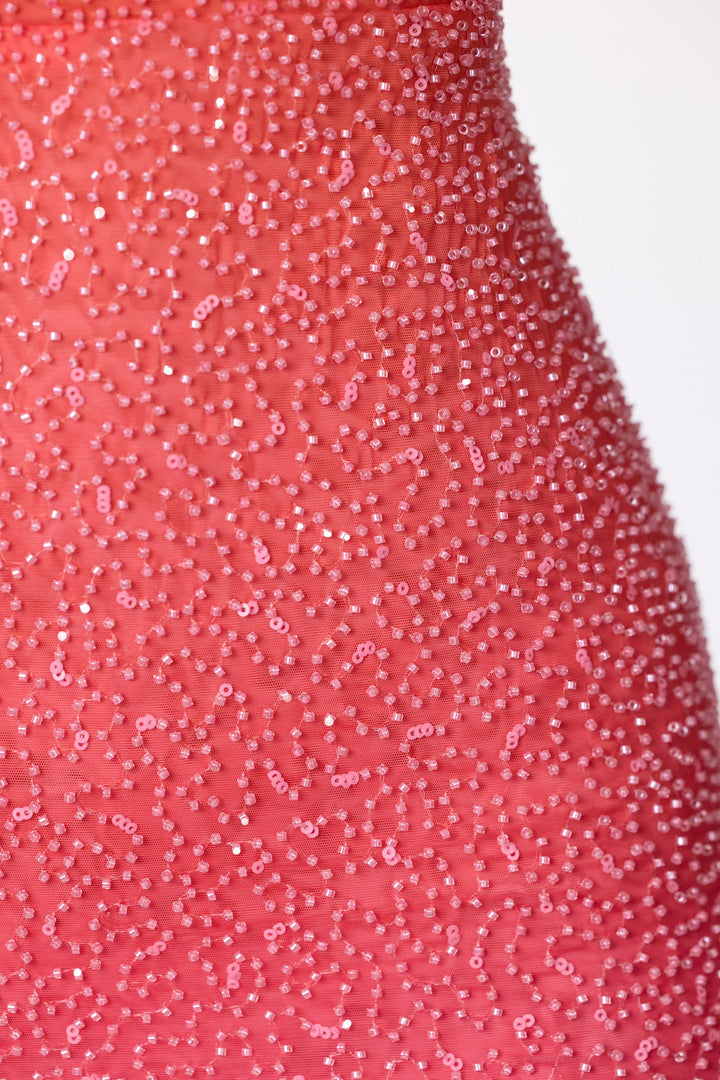 Kırmızı Ve Turuncu Ombré İşlemeli Maxi Elbise