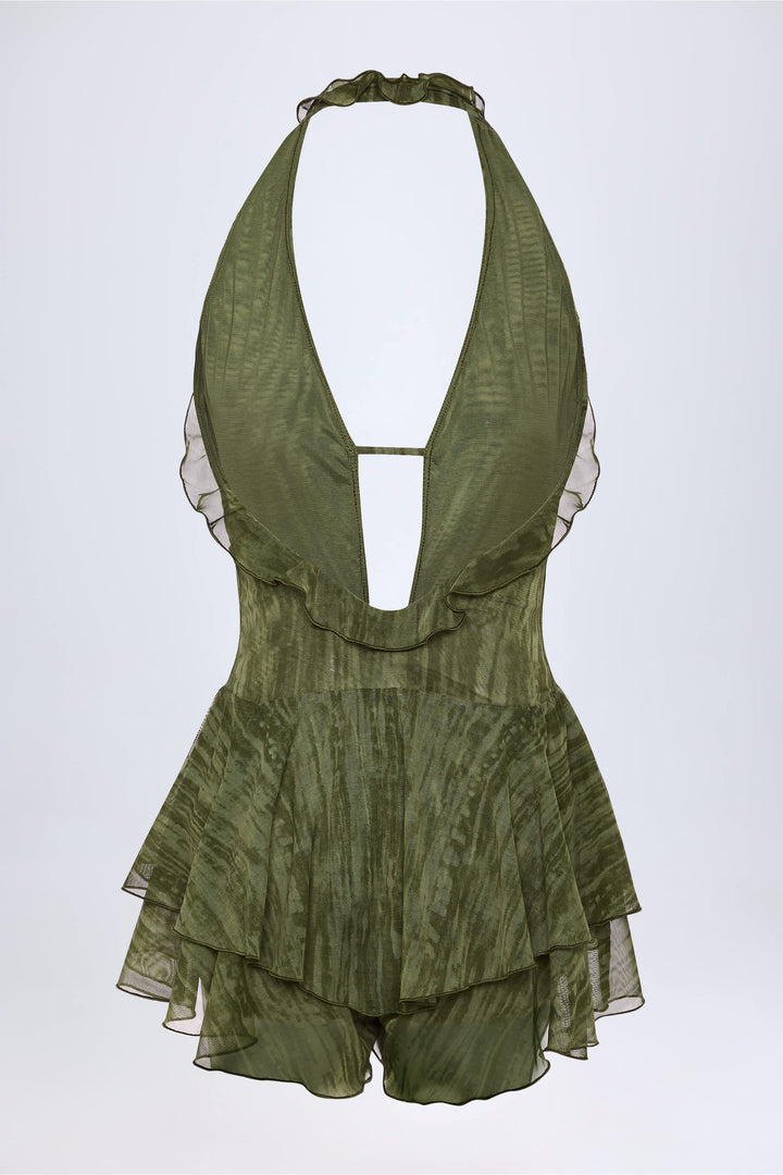 Yeşil Baskılı Fırfırlı Dalma Boyundan Bağlı Tulum Tulum