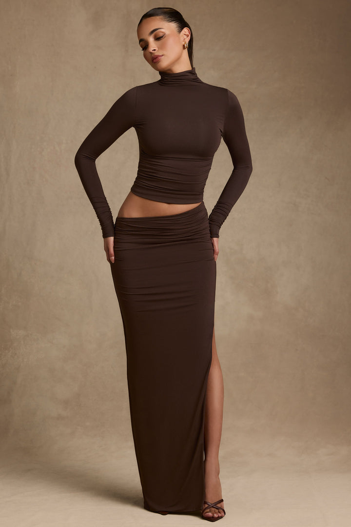 Çikolata Kahvesi Modal Asimetrik Bel Maksi Etek