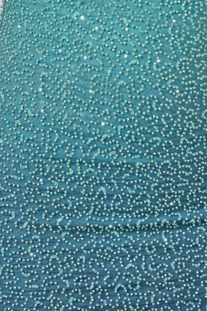 Mavi Ombré Taşlı Boyundan Bağlamalı Mini Elbise