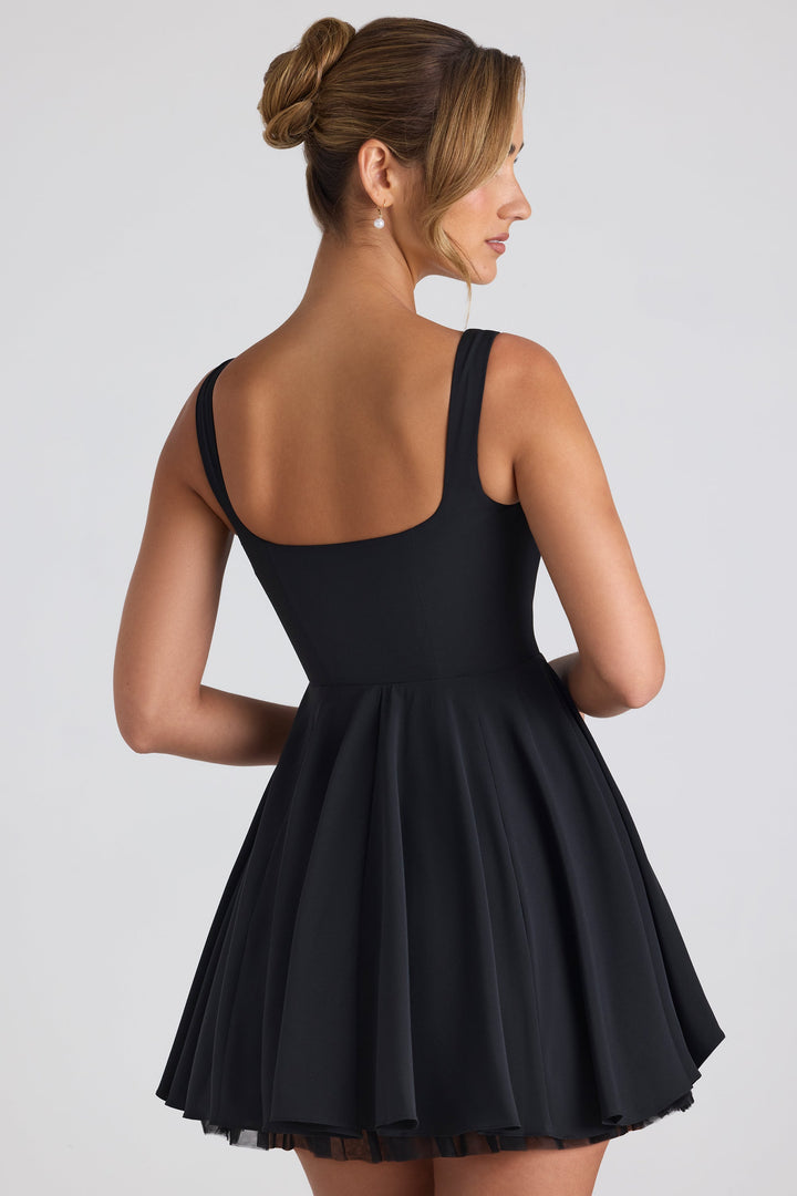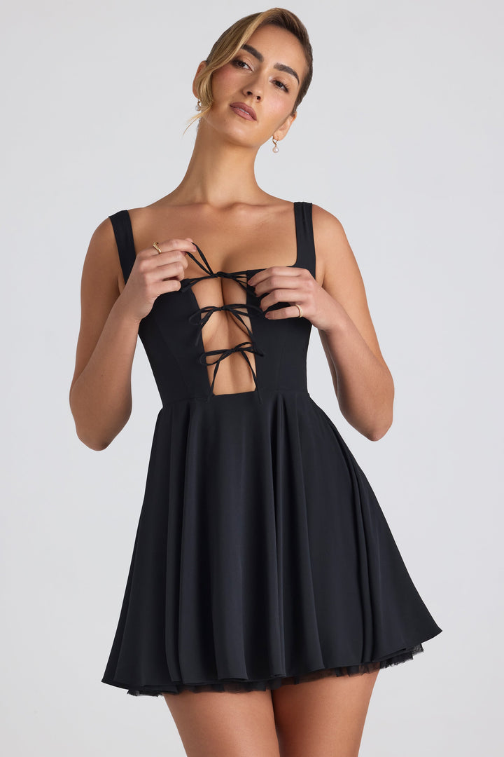 Bağlama Detaylı A Kesim Mikro Mini Elbise Siyah