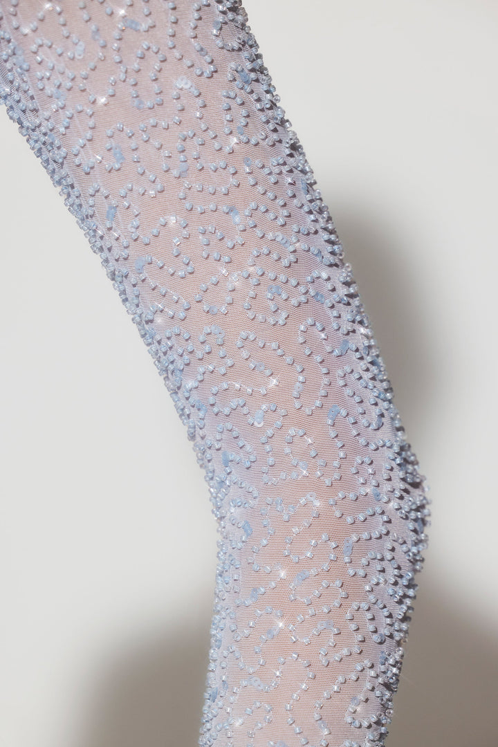 Mavi İşlemeli Uzun Kollu Açılı Etek Mini Elbise