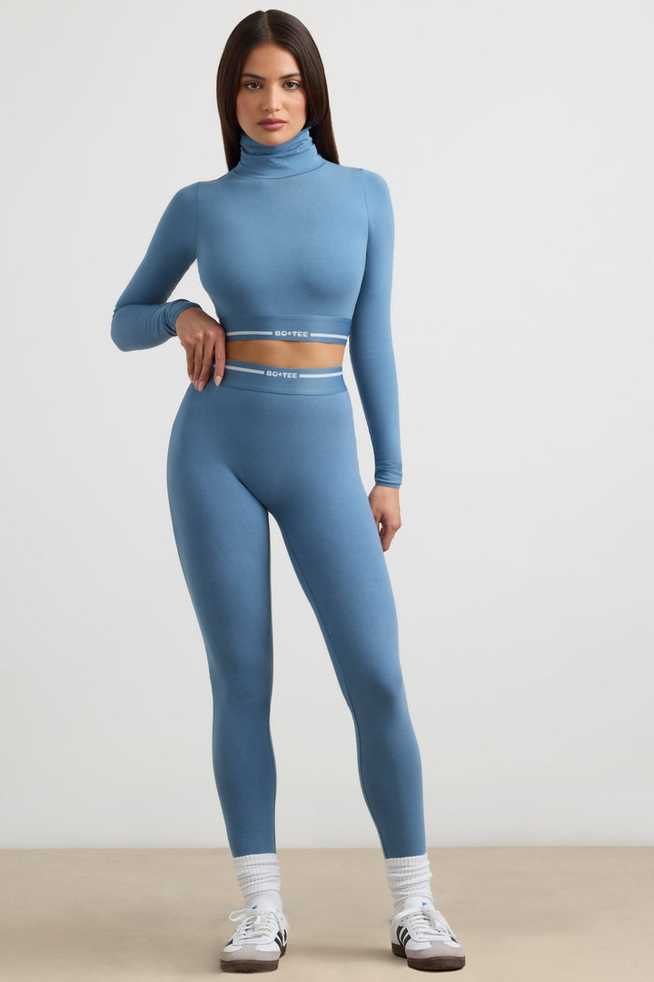 Çelik Mavi Yüksek Bel Tayt