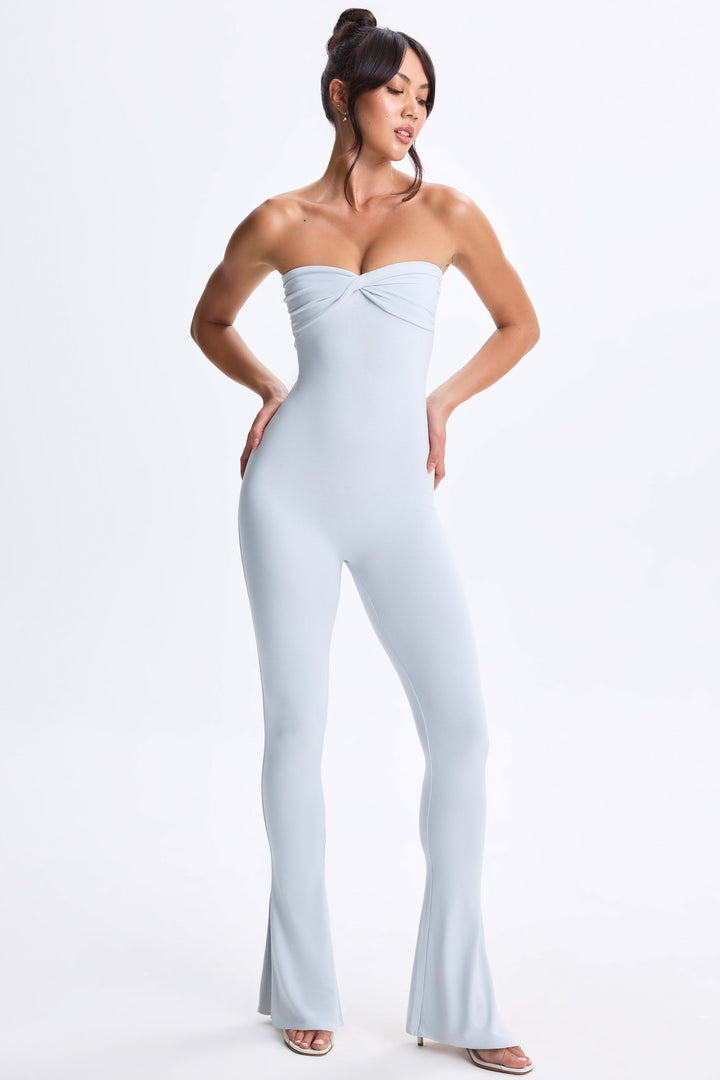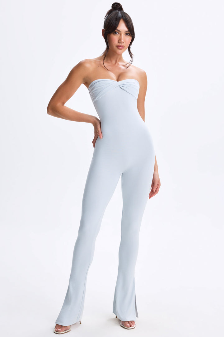 Tozlu Mavi Minik Kıvrımlı Önden Yırtmaçlı Kloş Tulum