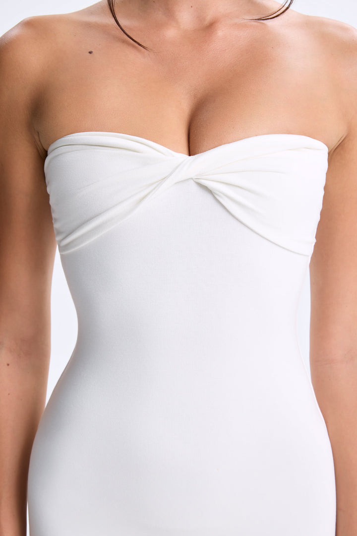 Beyaz Minik Kıvrımlı Önden Yırtmaçlı Kloş Tulum