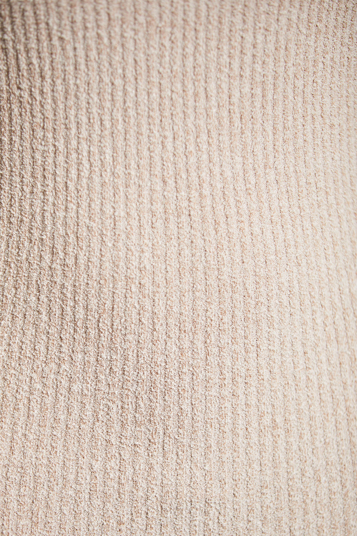 Bej Soğuk Omuzlu Uzun Kol Mini Elbise
