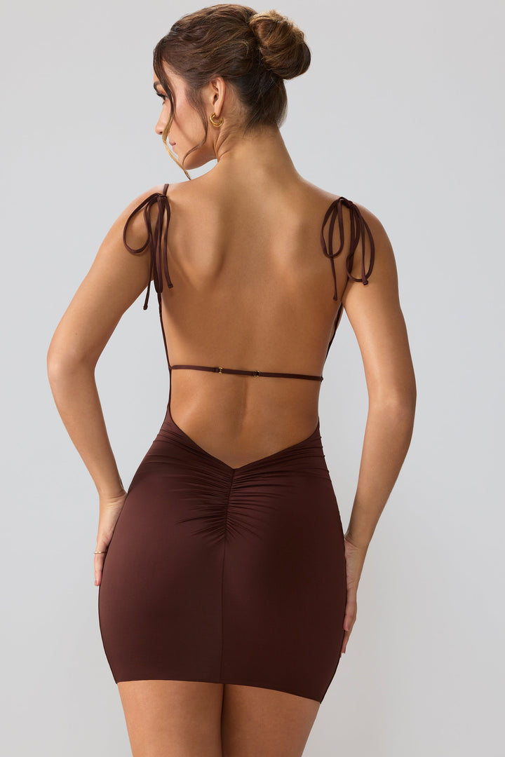 Espresso Slinky Jersey Sırtı Açık Mini Elbise
