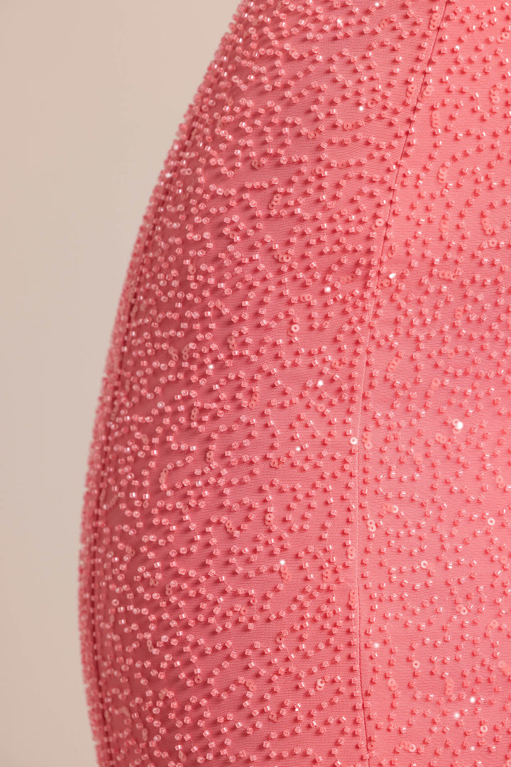Mercan Taşlı Bandeau Dekolte Yaka Maxi Elbise