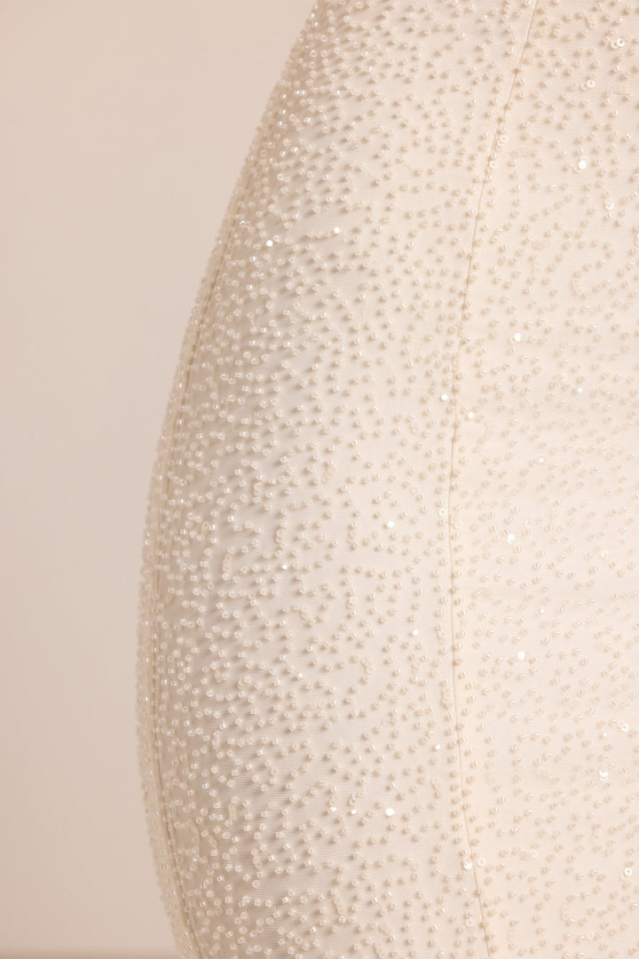 Beyaz İşlemeli Bandeau Dekolte Yaka Maxi Elbise