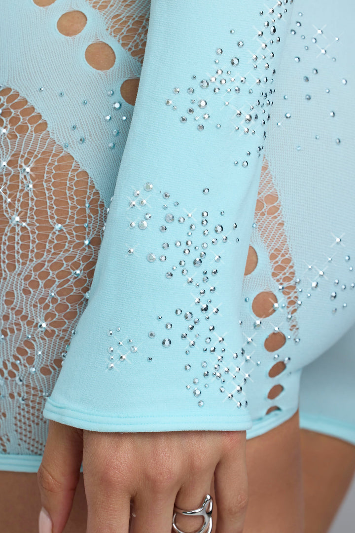 Buz Mavisi Süslü Kırpılmış Omuz Silkme