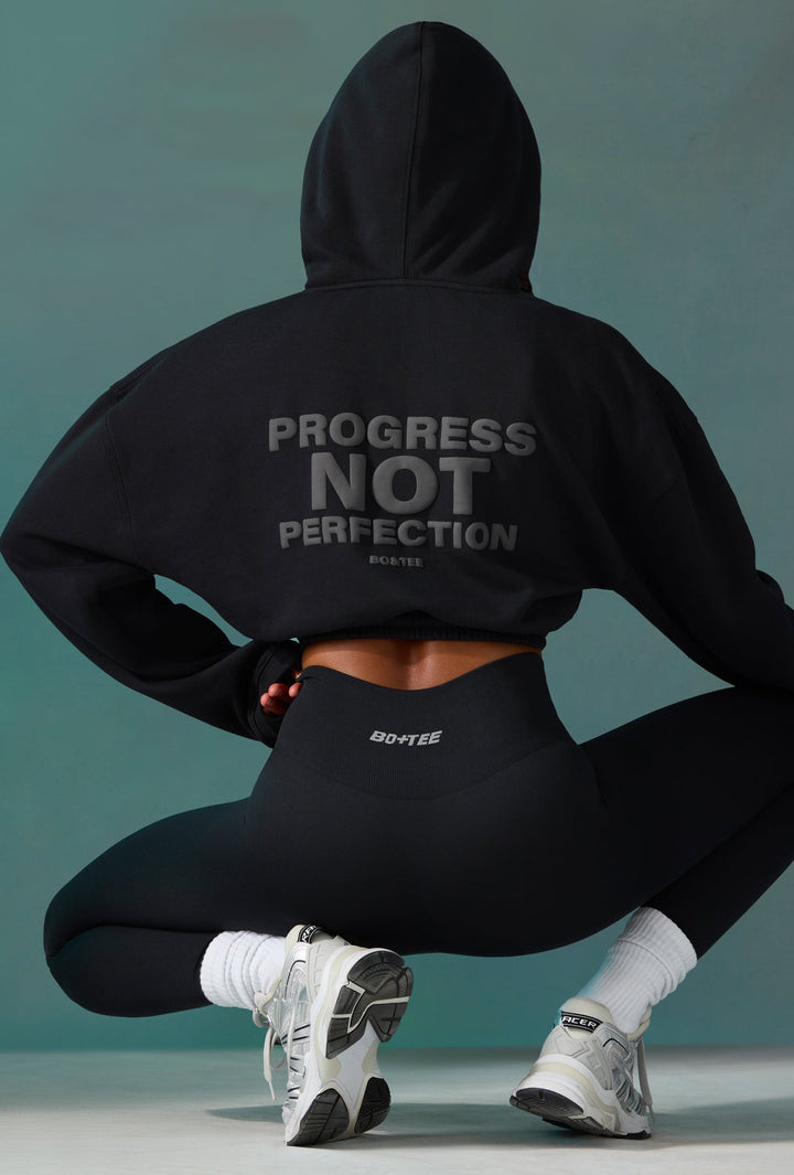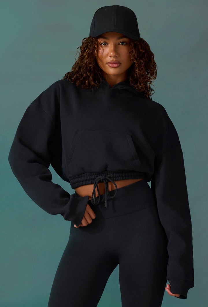 Siyah Kısa Büzgülü Kapüşonlu Sweatshirt