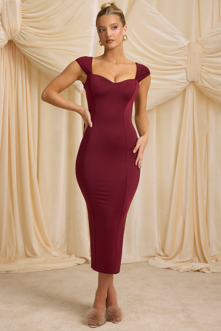 Şarap Kırmızısı Daracık Jarse Fiyonk Detaylı Midaksi Elbise