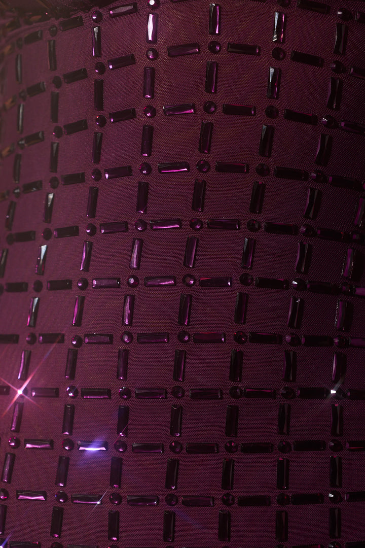 Koyu Mor İşlemeli Dekolteli Mini Elbise