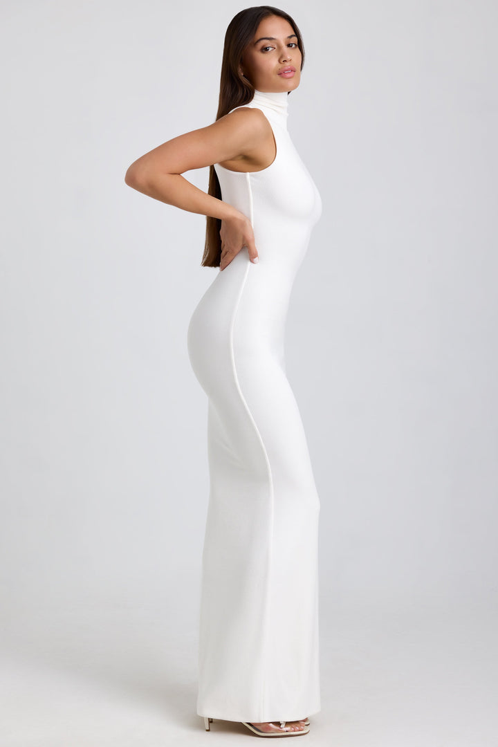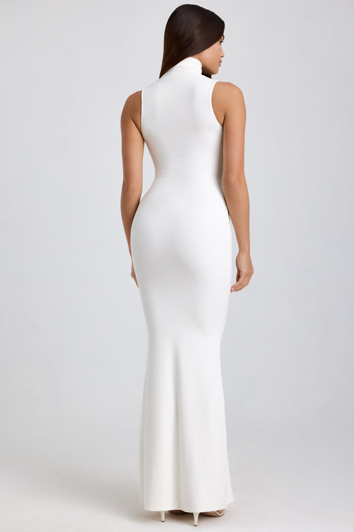 Beyaz Fitilli Modal Balıkçı Yaka Maxi Elbise