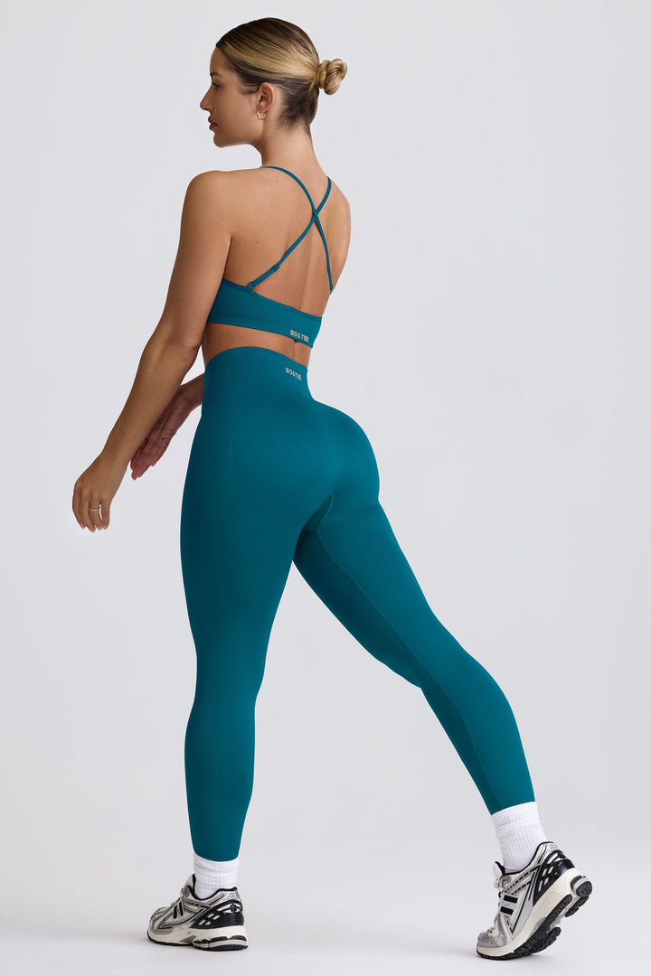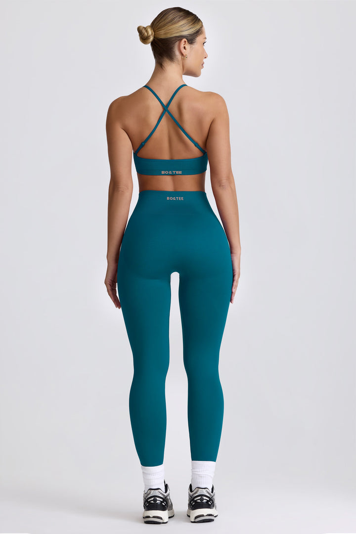 Deniz Mavisi Süper Şekillendirici Dikişsiz Yüksek Bel Tayt