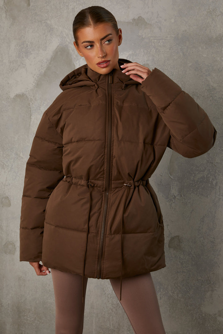 Kakao Kahvesi Orta Boy Kapüşonlu Şişme Kaban