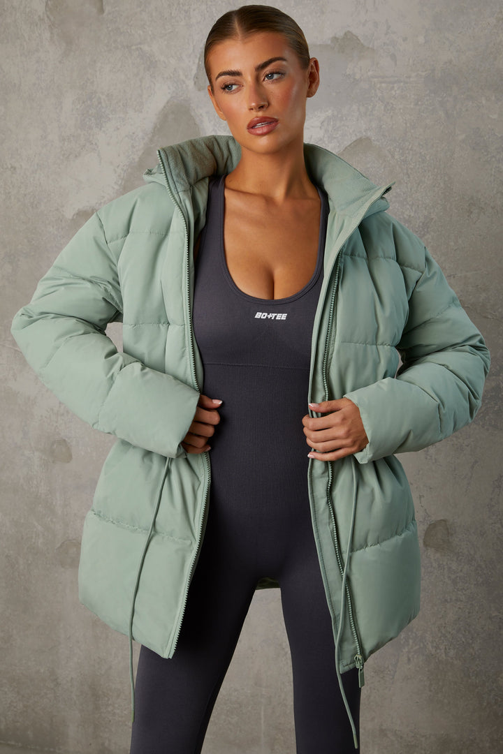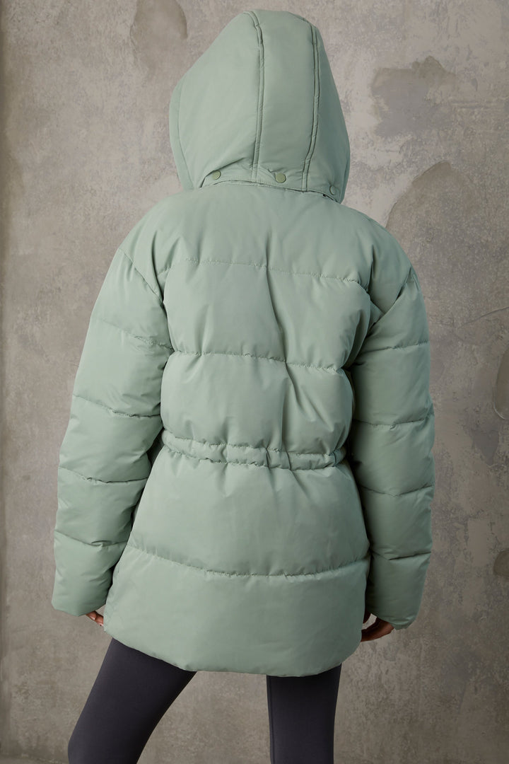 Buzdağı Yeşili Orta Boy Kapüşonlu Şişme Kaban