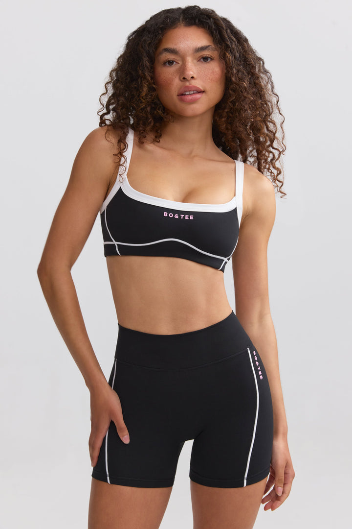 Yumuşak Aktif Kontrast Şeritli Siyah Mini Şort