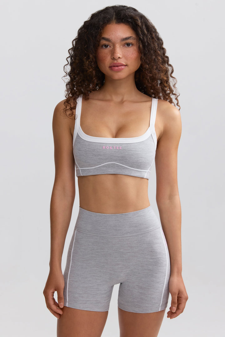 Buz Grisi Yumuşak Aktif Kontrast Kesimli Mini Şort