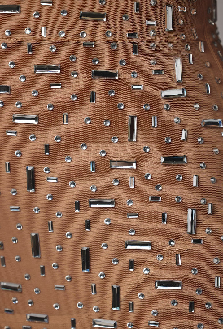 Badem Taşlı Transparan Yüksek Yaka Abiye Elbise