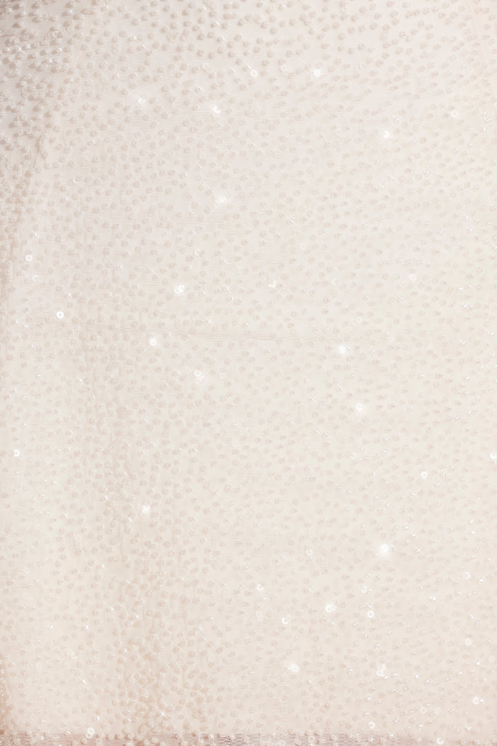 Beyaz Taşlı Asimetrik Yaka A Kesim Mini Elbise
