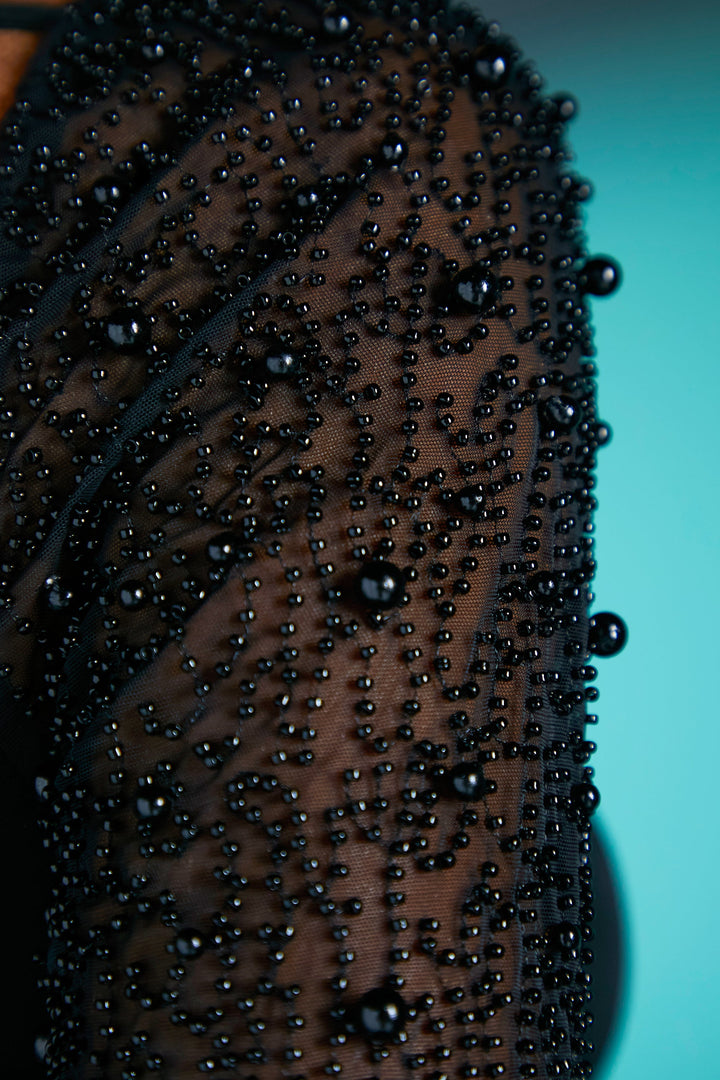 Siyah Taşlı Uzun Kol Mini Elbise