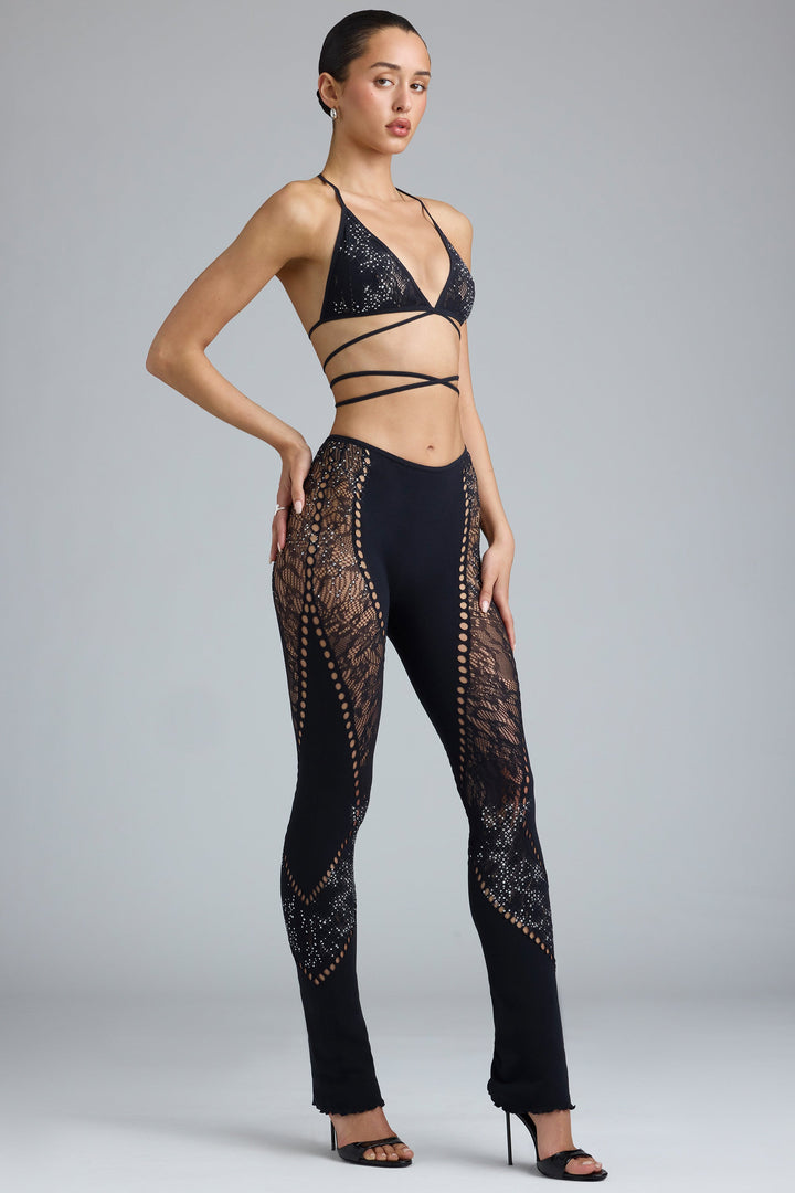 Siyah İşlemeli Orta Bel Kloş Pantolon