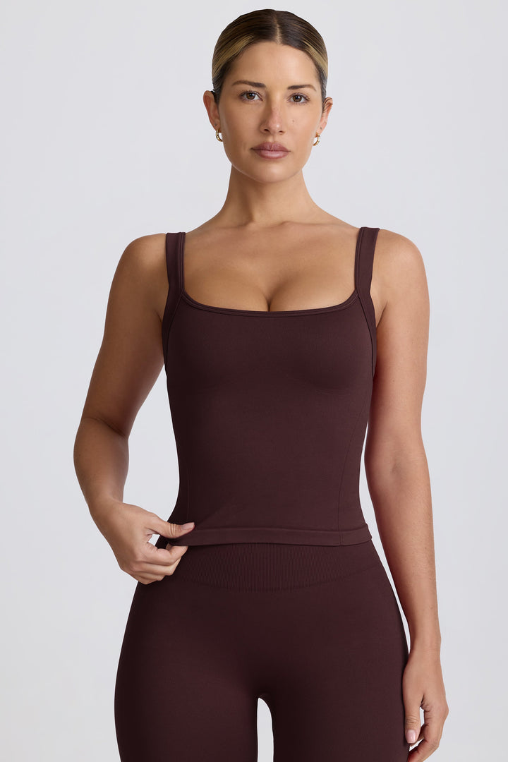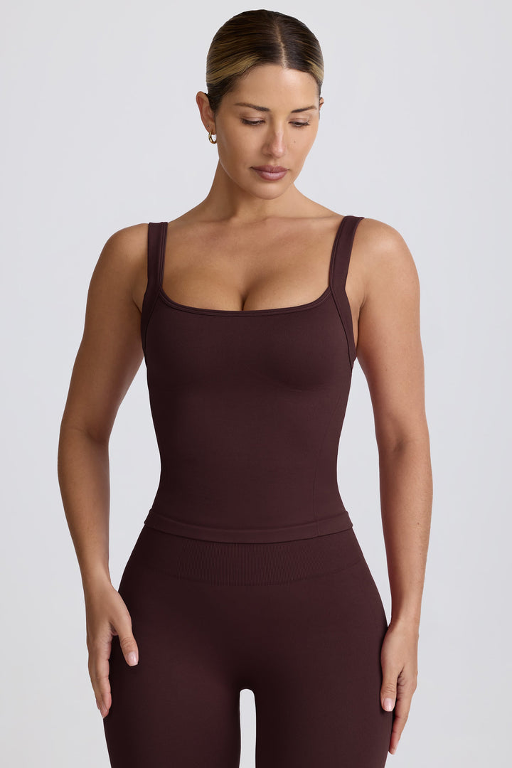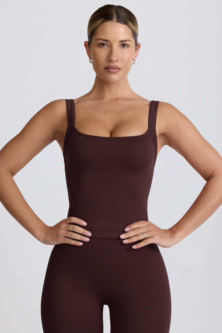 Çikolata Rengi Süper Şekillendirici Dikişsiz Uzun Kolsuz Bluz