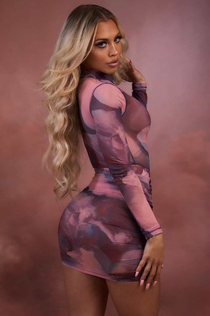 Allık Yüksek Yaka Uzun Kollu File Bodysuit