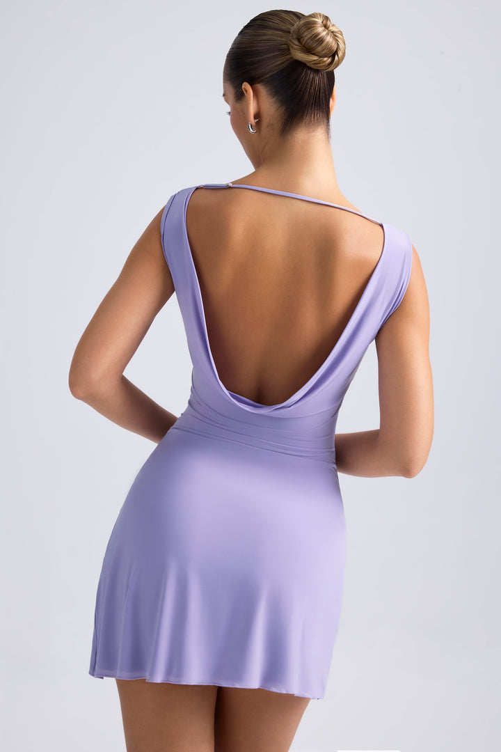 Tozlu Lila Omuzları Açık A Kesim A Kesim Mini Elbise