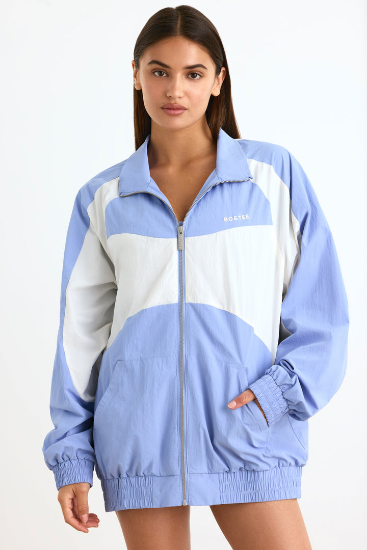 Lavanta Mavisi Blok Renkli Antrenman Ceketi
