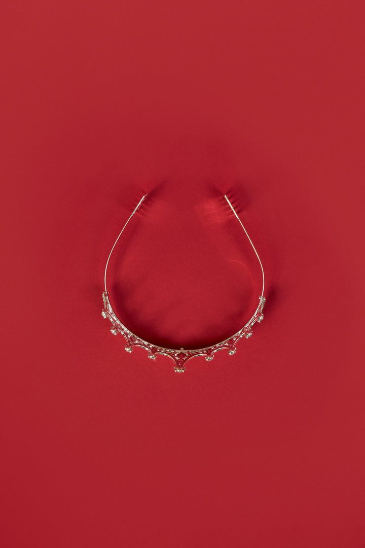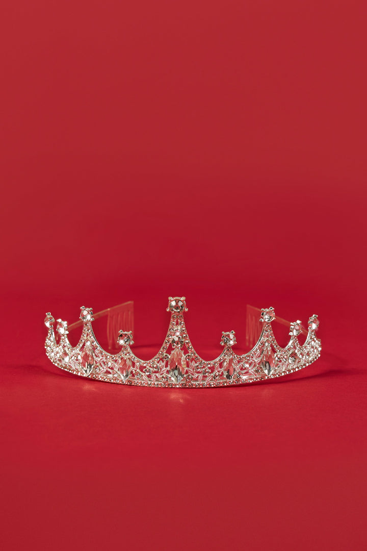 Gümüş Tonunda Kristal Süslemeli Taç