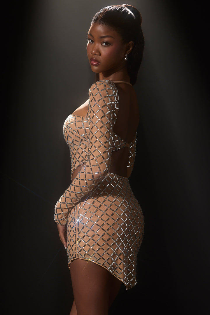 Badem İşlemeli Asimetrik Orta Bel Mini Etek