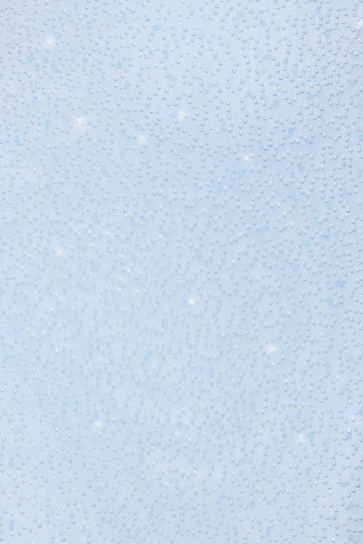 Mavi İşlemeli Dalma Boyundan Bağlamalı Gece Elbisesi