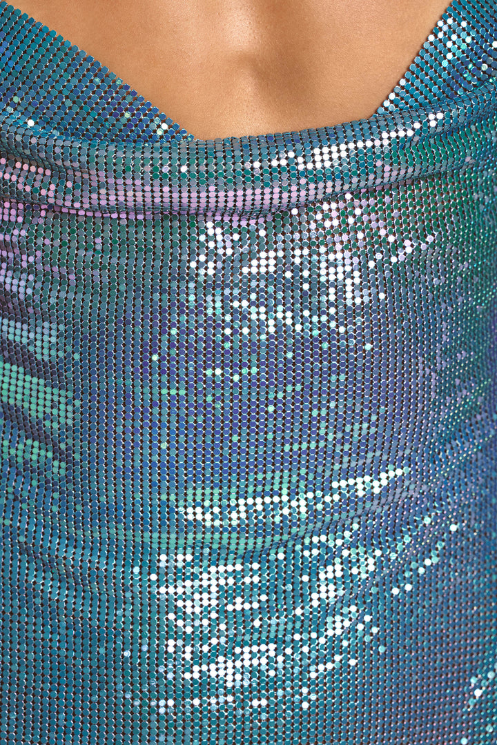 İndigo Premium Zincir Zırhlı Yan Fırfırlı Mini Elbise