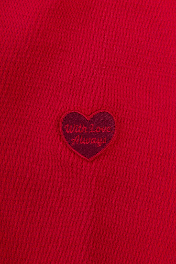 Sıcak Kırmızı Kısa Fermuarlı Kapüşonlu Üst
