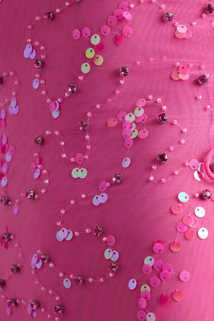 Sakız Pembesi Taşlı Bağcıklı Mini Elbise
